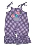 | Perfect for that little girl in your life! This adorable set is from Mud Pie's, Baby Buds line. Longall features gathered grosgrain ribbon flowers on its front. Cute 3D flower pot design. Ties on the shoulders, allowing for adjustments to the length. Flare style pant legs have wide ruffled hems. Set is made of lightweight, white diamonds on purple background fabric. 100% cotton. ...Read