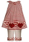 | Red and white stripes and pin-dot legging set with ruffle heart appliques and ruffle edge trim. Machine wash. Imported (El Salvador). Of cotton/spandex; Exclusive of trim/decoration. Matching/Coordinating sister styles available in sizes 3M-4T, search for style(s): BNJ-6996. More baby & girl party dresses available, search for: "iPovePou-girl-dresses " ...Read